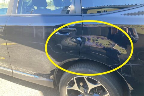 再塗装と中古交換の方法をご提案させていただき、今回は中古交換での作業となりました。中古部品のため多少の使用感はありますが、再塗装修理の半値以下に抑えることができました。
