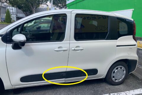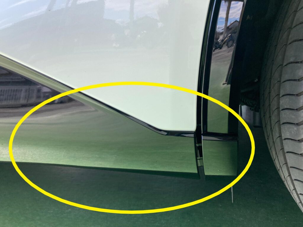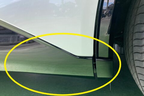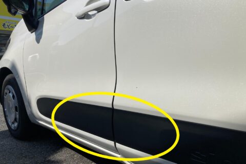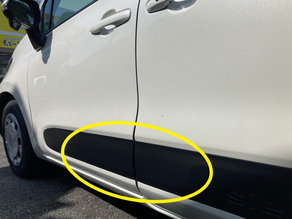 前後のドアについている黒いモールに傷がついてしまったため、こちらは両方新品交換しました。また、後ろの方はモールだけでなくドア本体にも少し損傷があったので、狭い範囲で修理を行い、モールが正しく装着できるようにしました。
